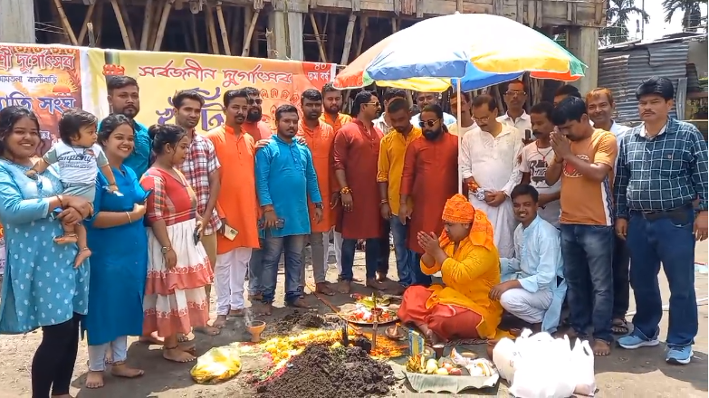Siliguri, 30th August: The Siliguri Yuba Jyoti Sangha commenced its preparations for Durga Puja (Durgotsava) with the traditional ritual of ‘Khutti Puja’ a month ahead of the autumnal festival. With the preparations this year, Yuba Jyoti Sangha will be conducting its 40th year of celebrating Durga Puja.
