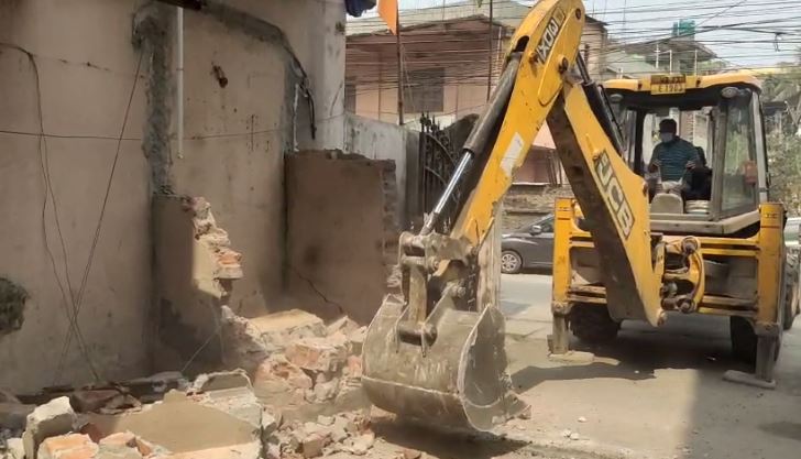 Siliguri, 12th March: In the ongoing campaign against unauthorized construction, the Siliguri Municipal Corporation (SMC) initiated action and demolished the unauthorized construction built in Kalika Apartment of Siliguri’s Ward No. 13 on Tuesday.