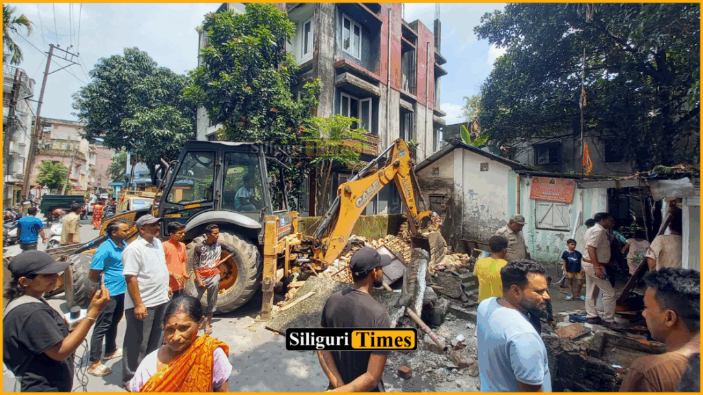 Siliguri, 04th June: The Siliguri Municipal Corporation (SMC) on Wednesday carried out an eviction drive in Ashram Para, Durga Das Banerjee Road, under Ward No. 14, leading to tension in the area.