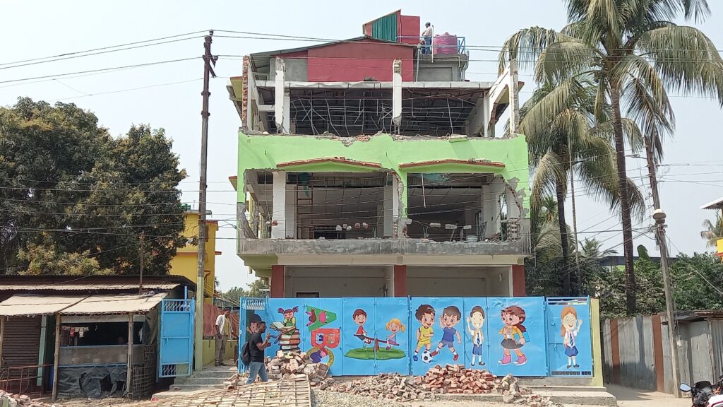 According to reports, a multi-storeyed building was being illegally constructed in the area adjacent to the pipeline of Siliguri’s Ward No. 36. In addition, a play-school was also established in the building. The plan permitted the house owner to construct only two floors; however he constructed the fourth floor illegally. Despite repeated notices sent by the SMC, the owner of the house did not take a move which prompted the SMC to bring down the unauthorized construction in the presence of police administration on Thursday.