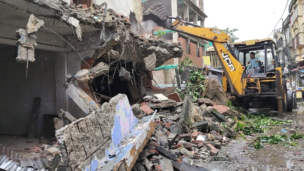 Siliguri, 05th September: The Siliguri Municipal Corporation (SMC) has demolished a dangerously dilapidated building on Shivaji Road in Ward No. 08, Siliguri. The structure, approximately 80 years old, had been used as rental accommodations and commercial spaces.