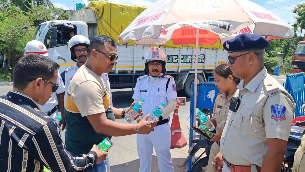 Sardar distributed glucose and water bottles to traffic police officers stationed at Nawapara Canal More, near Sahudangi on the Fulbari-Gajoldoba State Road. He also extended the distribution to drivers passing through the area.