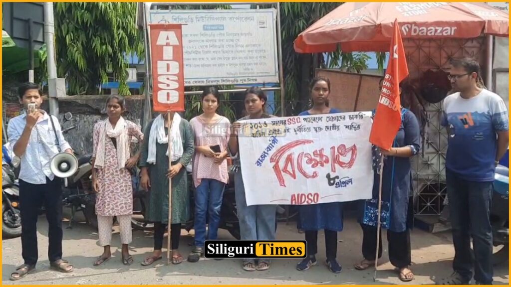 AIDSO Darjeeling District Committee joined the protest in Siliguri on Tuesday demanding immediate publication of the list of qualified candidates and reinstatement of their jobs.