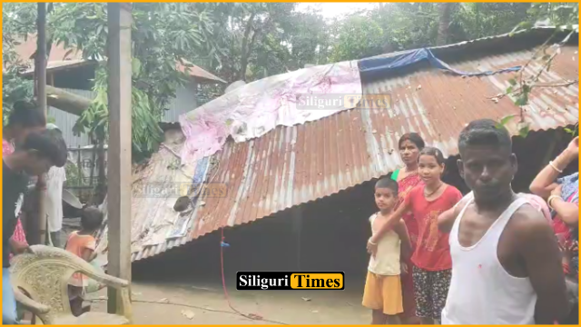 Naxalbari, 14th July: A severe storm late Sunday night caused extensive damage in Naxalbari’s Shantinagar area, leaving several houses damaged and more than 25 trees uprooted.