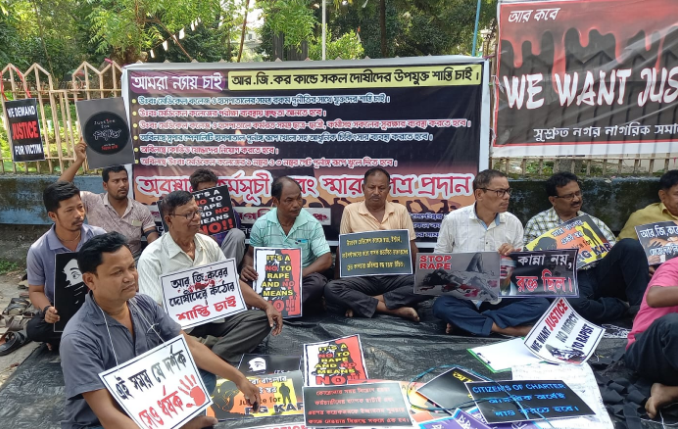 The protest was centered around seeking punishment for those responsible in the R.G. Kar case, among other issues. During the demonstration, the organization submitted a memorandum addressed to the Chief Minister through the principal of the medical college.