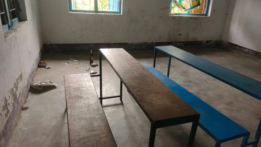 Rajganj, 11th January: An unsettling issue has emerged where the teachers and students of Chakiabhita Shishu Shiksha Kendra, located near Ambari under Rajganj block, are distressed due to the occurrence of drinking and gambling inside the classrooms at night.