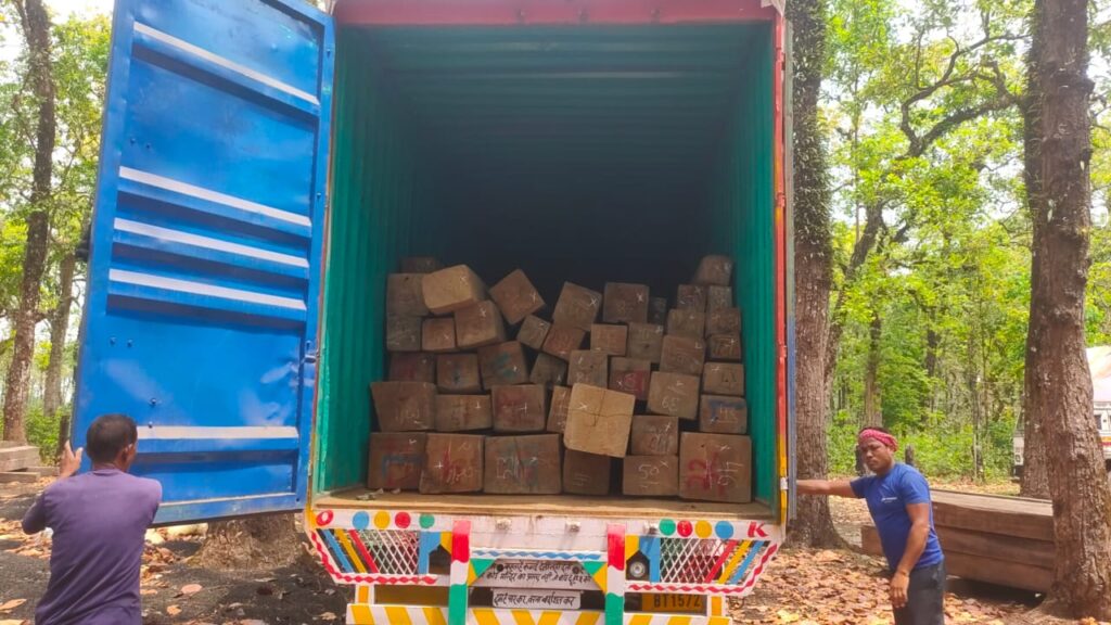 Rajganj, April 24th: Forest workers from the Belakoba Range recovered Burma teak wood worth Rs 40 lakh before it could be smuggled out. A person, identified as Ram Bilas, a resident of Uttar Pradesh, has been arrested in connection with this incident