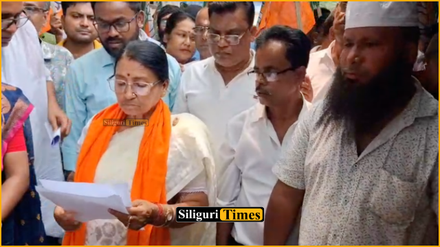 Demanding the arrest of all accused, BJP leaders staged a protest outside NJP police station on Friday. Dabgram-Fulbari BJP candidate Sikha Chatterjee also participated in the protest.