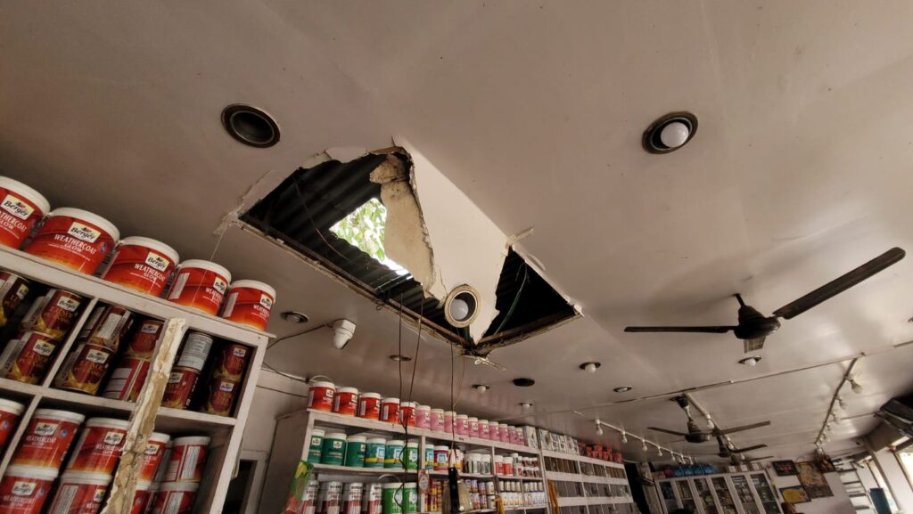 Preliminary investigations revealed that the thieves executed the theft after breaking and subsequently entering the hardware shop by cutting the tin roof. In addition, the thieves stole the CCTV along with the DVR and some valuables along with money from the cash box. At present, the entire incident is under further investigation.