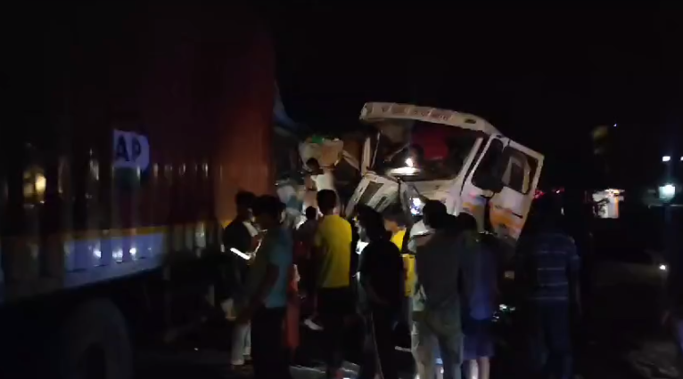 Kharibari, 16th June: A grave accident unfolded late Saturday night on the National Highway No. 327 near Panitanki of Kharibari, as two cargo trucks collided head-on, resulting in injuries to three individuals.