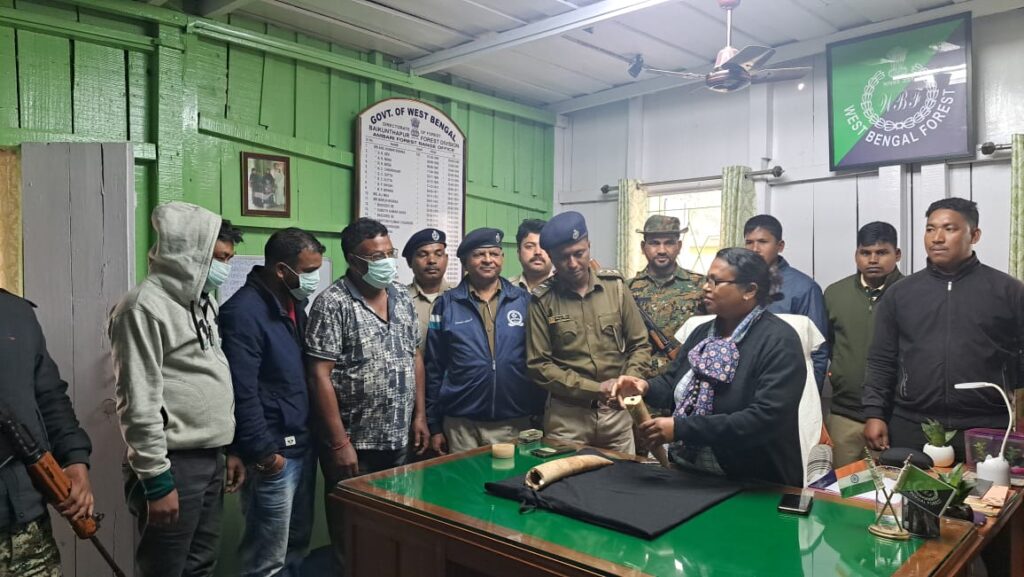 Ambari, 09th December: In a significant breakthrough, the forest personnel of Ambari range arrested three individuals with two elephant ivory from the Champasari area of Siliguri.