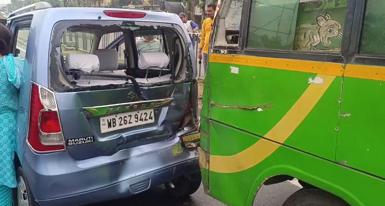 As per the details received, the incident took place when a small four-wheeler was en route with a sick woman. During this, the vehicle ahead of the four-wheeler abruptly came to a halt causing a passenger bus trailing behind to lose control, resulting in a forceful impact on the small car.