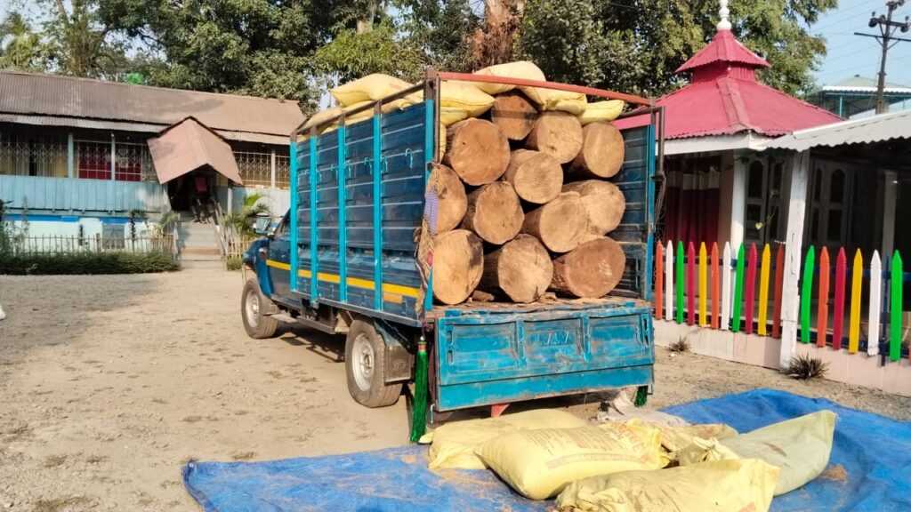 Rajganj 23rd November: In a significant breakthrough, the forest personnel of the Ambari Range foiled timber smuggling bid and seized wood logs worth about Rs 3 lakh, cleverly hidden among paddy husk sacks, and arrested one involved in the illicit activity. The incident took place in the Fulbari More area of the Siliguri-Jalpaiguri National Highway.