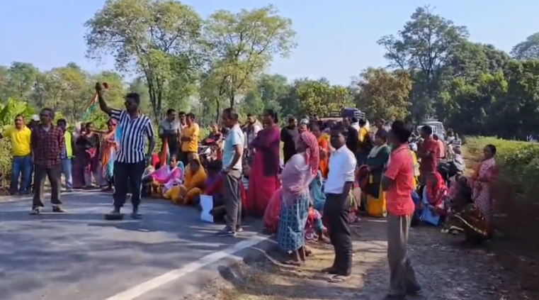 Bagdogra, 03rd January: The workers of Tirhana Tea Estate, supported by the INTTUC, staged a road blockade demanding the reopening of the tea garden in Bagdogra. Notably, the tea garden was earlier closed over puja bonus issues.