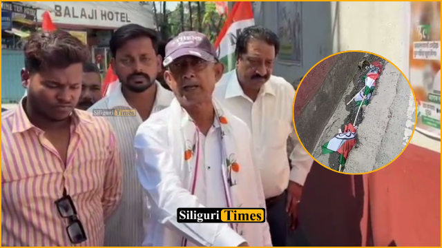 Siliguri, 07th April: Tension prevailed in Siliguri’s Ward No. 10 after allegations surfaced that Trinamool Congress party flags were torn and thrown into a drain in the Nabin Sen Road area.