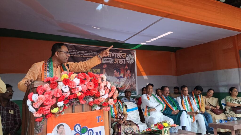 Rajganj, 01st March: On Tuesday, the members of Trinamool Congress (TMC) organized a meeting on the grounds of Sree Sangha Club in Rajganj in efforts to achieve success in the upcoming ‘Brigade Sabha’. TMC spokesperson Arup Chakraborty addressed the meeting attended by several party members and workers.
