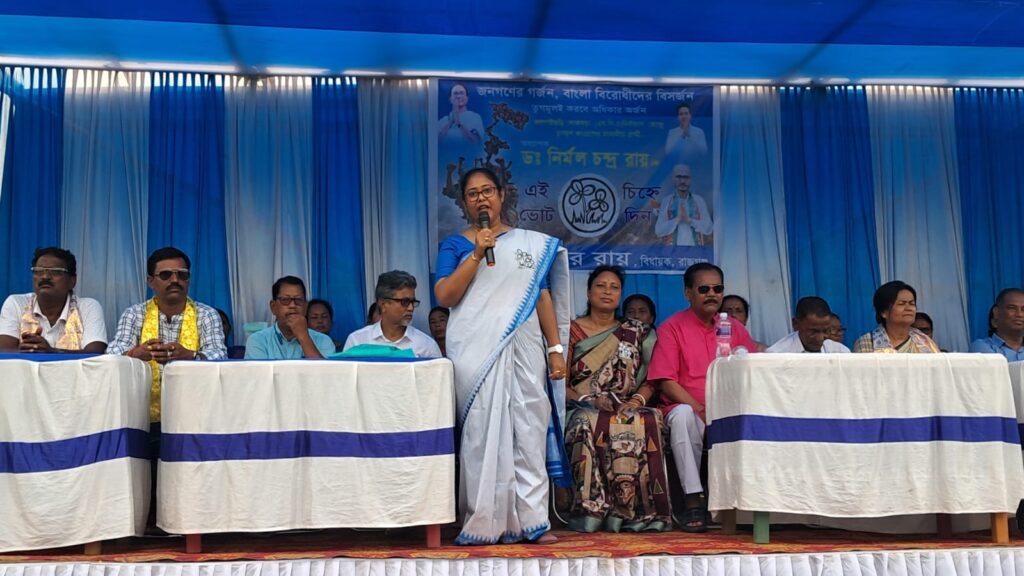 Rajganj, 06th April: Trinamool Mahila Congress organized an election meeting in support of Jalpaiguri Lok Sabha candidate Nirmal Chandra Roy at Ashrampara ground adjacent to Fatapukur in Rajgaj block.
