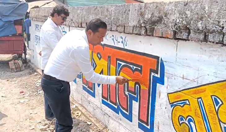 Naxalbari, 13th March: On Wednesday, Trinamool Congress (TMC) workers initiated a wall-writing campaign at the Naxalbari station in support of TMC candidate Gopal Lama in the Darjeeling Lok Sabha constituency. Significantly, Sabhadhipati Arun Ghosh of the Siliguri Mahakuma Parishad, also joined the party members and contributed to the campaign.
