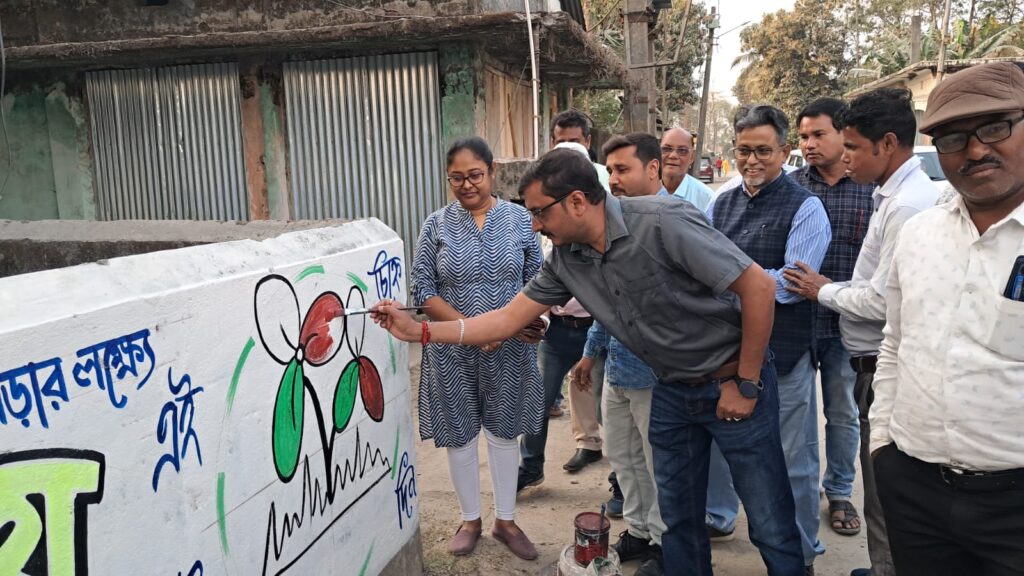 Rajganj, 12th March: On Tuesday, the Trinamool Congress (TMC) of Rajganj block began its wall-writing campaign in support of Jalpaiguri’s Lok Sabha constituency candidate Nirmal Chandra Roy in Babu Para of Rajganj.