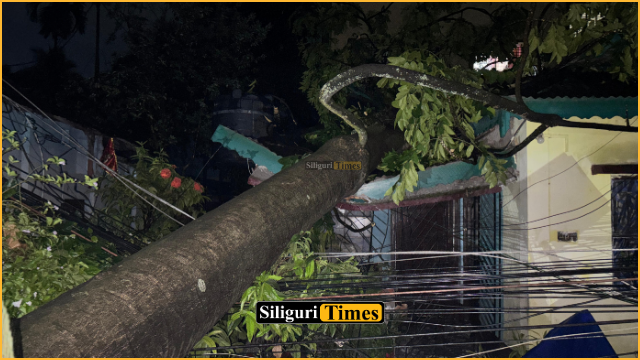 Removal work from the house began immediately, with Siliguri Municipal Corporation and the disaster management team on site. In Gandhi Maidan of Ward No. O8, a large banyan tree fell on a shop, with the shopkeeper narrowly escaping injury.