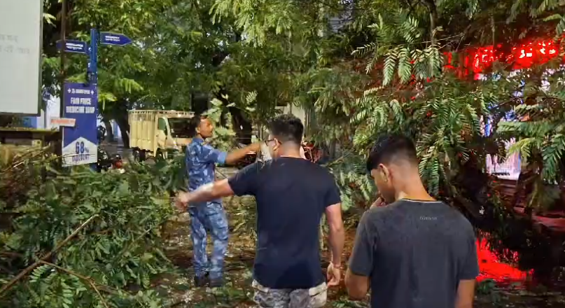 Naxalbari, 25th September: A large, aged tree collapsed late at night in front of the emergency department of Naxalbari Rural Hospital, following heavy rain.