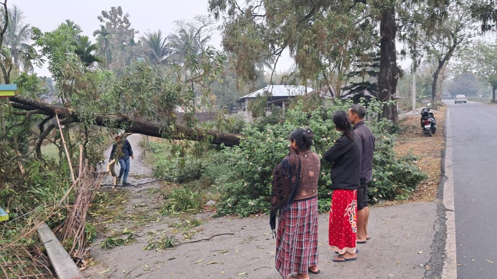Rajganj, 20th March: On Tuesday night, rainfall and the accompanying wind resulted in the fall of trees and electric pole on the road leaving the residents of Chhatarpara adjacent to Sahudangi of Rajganj block in trouble. The incident led to the disruption of traffic and power services in the area.