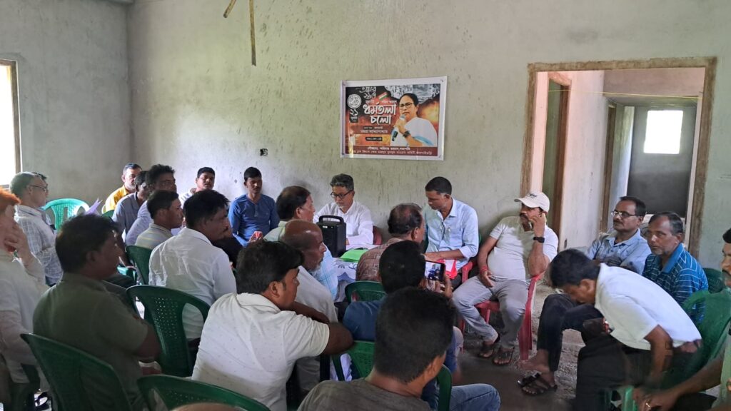 Rajganj, 14th July: The Kisan Khet Mazdoor Trinamool Congress Committee organized a preparation meeting for the upcoming Martyrs’ Day program on July 21st at Sitaguri in Rajganj. The meeting, held on Sunday, focused on mobilizing several hundred workers and supporters from the region to participate in the event at Dharmatala, Kolkata.