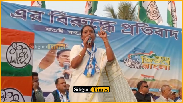 Siliguri Mayor Gautam Deb, District Chairman Sanjay Tibrewal, Sabhadhipati Arun Ghosh, and several other TMC leaders attended the protest.