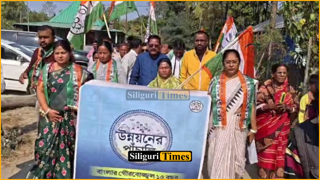 The yatra is led by Rajganj MLA Khageswar Roy, with participation from Rajganj Block TMC president Arindam Banerjee, TMC women leader Sarbani Dhara, TMC youth president Niladri Ghosh, and leaders and workers including Archana Roy, Raju Sahni, Devashish Biswas, and Mosharraf Hussain.