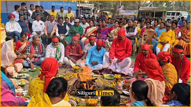 Rajganj, February 12: Rajganj MLA Khageswar Roy organised a Maha Yajna for the welfare of humanity on Thursday amid growing concern over the rising number of road accidents in the area. The religious ceremony was held in front of the Patilavasha Kadamtala Kali Temple in Belakoba, Rajganj.