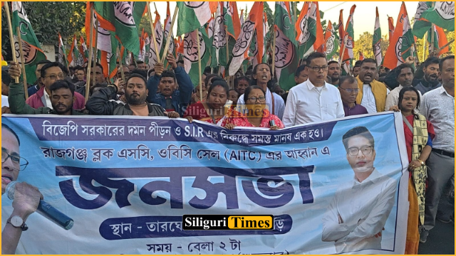 Rajganj, 12th December: The Trinamool Congress SC-OBC cell organized a protest rally and public meeting in Ambari against the BJP government’s policies and the SIR project. The rally was led by Krishna Das, District President of the SC–OBC cell of Jalpaiguri district Trinamool Congress.