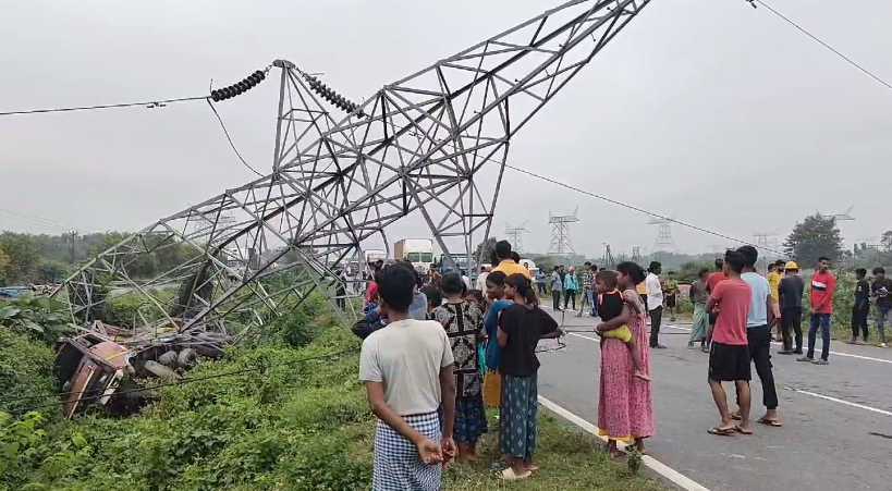 Fulbari, 30th October: A truck loaded with rice collided with a high-tension electricity pole, causing it to collapse. The incident occurred on National Highway 27, along the Ghoshpukur-Fulbari bypass.