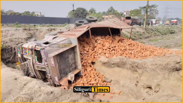 According to sources, the truck was on its way to Jalpaiguri from Bihar carrying bricks. Upon reaching the Amaidighi area in the early hours, the driver suddenly lost control of the vehicle, causing it to fall into a roadside ditch and overturn. No casualties have been reported in the incident.
