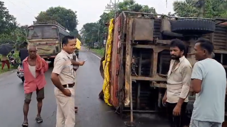 Upon receiving the information, the Panitanki outpost police swiftly arrived at the scene and used a crane to lift the overturned truck. The Kharibari police station is conducting a thorough investigation into the incident.