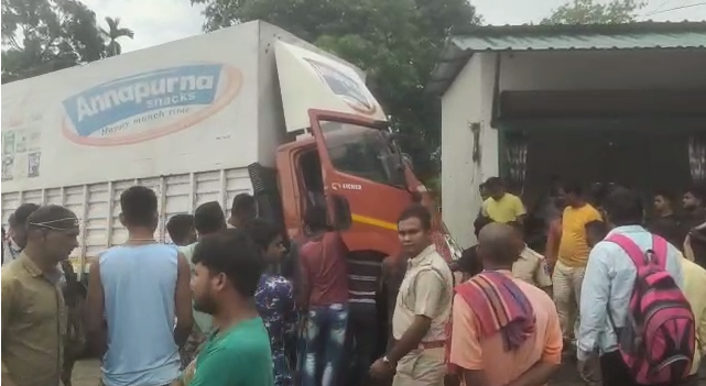 Siliguri, 23rd May: A truck lost control and rammed into a roadside shop in an area near Thakurnagar Railgate of Eastern Bypass in Siliguri. According to onlookers, the truck was on its way to Gora More from Ashighar, in the afternoon today, when the driver lost control and ran into the shop.