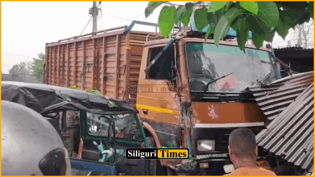 According to reports, the accident occurred on Friday when a truck coming from Siliguri lost control and hit a passenger bus approaching from the opposite direction. The impact was severe, and the truck went on to hit an e-rickshaw and a roadside shop after colliding with the bus.