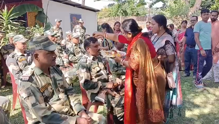 Cooch Behar, 15th November: The Bharatiya Janata Party (BJP) MLA from Tufanganj Malati Rava Roy arrived at the Madhya Balabhut BSF Camp of the Balabhut 14th Batallion in Cooch Behar and applied ’tilak’ to the BSF jawans.