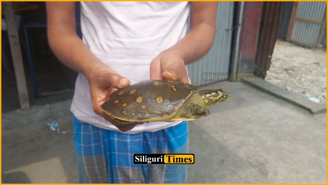 The turtle was temporarily kept in a bucket at a local residence, and the matter was reported to the New Jalpaiguri police.