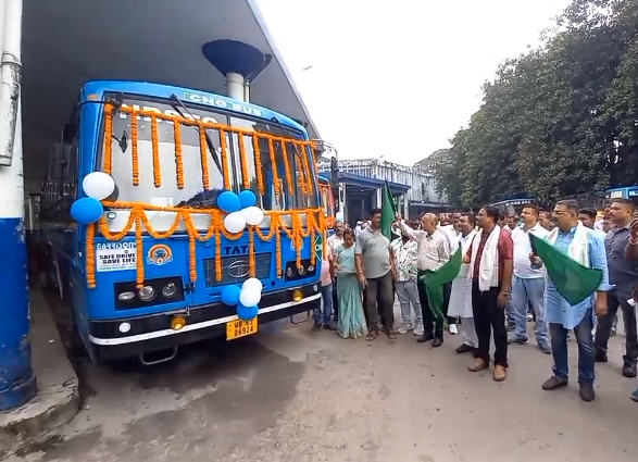 The Siliguri-Kolkata-bound AC Rocket Bus and the Siliguri-Coochbehar-bound CNG buses were officially launched at the Tenzing Norgay Bus Terminus on Tuesday, ahead of Durga Puja. The event saw the presence of NBSTC Chairman Partha Pratim Roy, Siliguri Mayor Gautam Deb, Deputy Mayor Ranjan Sarkar, and other officials.