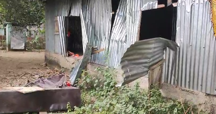 Kharibari, 01st December: Sensation prevailed after a herd of wild elephants entered the residential area in the 10-number line of Thanjhora Tea Estate in Kharibari’s Buraganj. The wild tuskers’ invasion left two houses damaged.