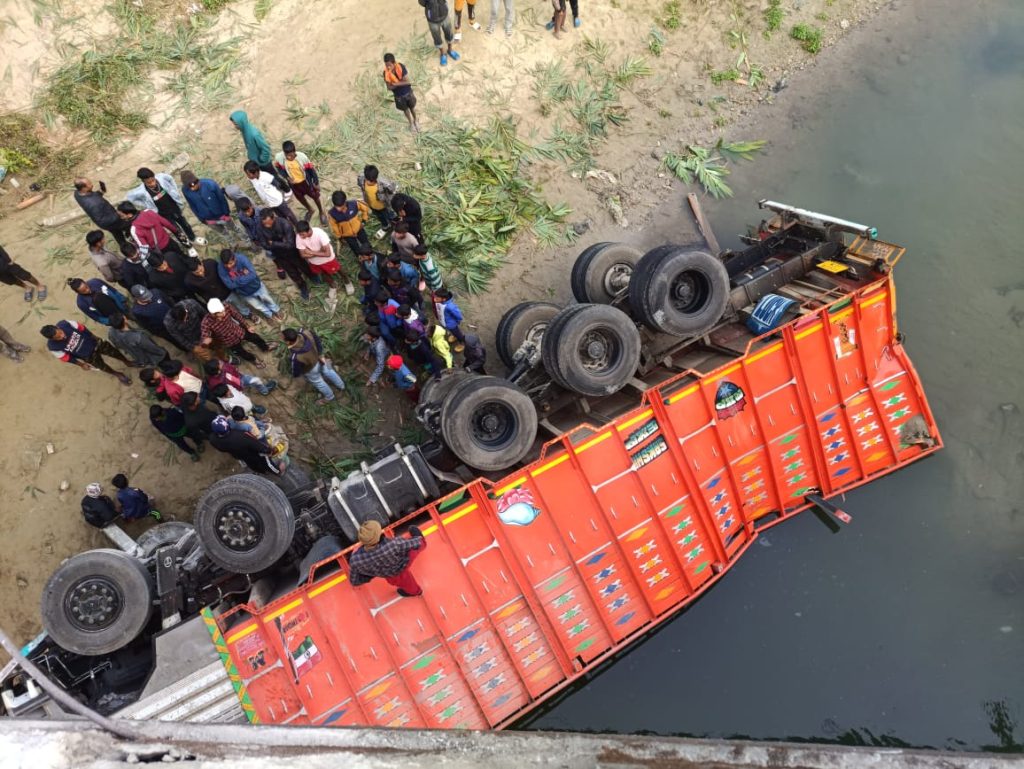 Reportedly, the said truck was on its way from Siliguri to Bihar on Saturday night. Then the truck went rampant and fell into the river breaking the railing of the bridge of the Chenga river. The driver and assistant driver, residents of Tripura were injured in the incident. However, both the injured were rescued and taken to Naxalbari hospital.
