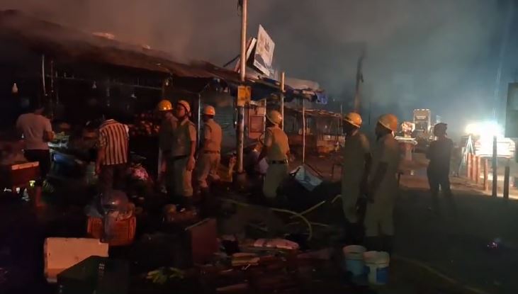 Siliguri, 22nd May: A devastating fire broke out at the Siliguri check post on Tuesday night, completely destroying two shops. Despite the best efforts of the firefighters, both shops were reduced to ashes.