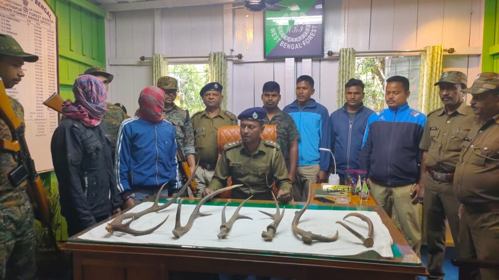 According to reports, on Monday night, acting on a tip off, the forest personnel of Ambari Range under the leadership of Ranger Alamgir Haque launched an operation in the Farabari Nepali Basti area adjacent to Siliguri. During the operation, 6 deer antlers were recovered, including one two to two and a half feet long antler. Subsequently, the smugglers were arrested and a two-wheeler was seized.