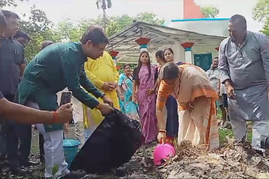 Siliguri, 01 October: On Sunday, the “Swachhta Hi Seva” program is being observed all across the nation. In this regard, Union Minister (UM) Smriti Irani actively participated in the program held at the Atal Tea Estate in Naxalbari. The event was attended by Union Minister, Darjeeling MP Raju Bista, BJP Observer Mangal Pandey, and others.