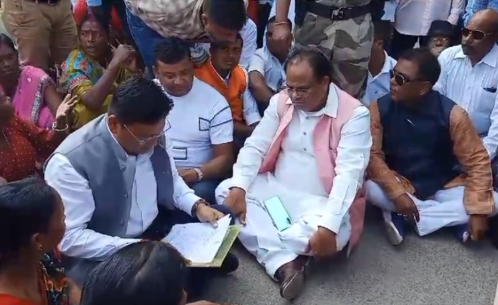 Upon arriving at the location, the ministers witnessed a barricade erected by the police administration in front of Dooars Kanya blocking the entrance. As a result, the ministers stood alongside the workers and staged a ‘dharna’ in favor of their demands.