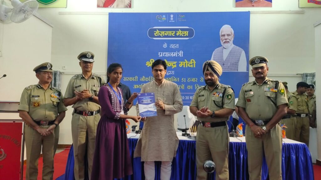 As per reports, about 281 individuals including women were given employment letters through the Rojgar Mela program at Border Security Force (BSF) Radharbari sector headquarters. On Monday, the Union MoS handed over the letters to 25 among them. The program witnessed the presence of Deepak M Damor, Inspector General of North Bengal Frontier of BSF, and other officers.