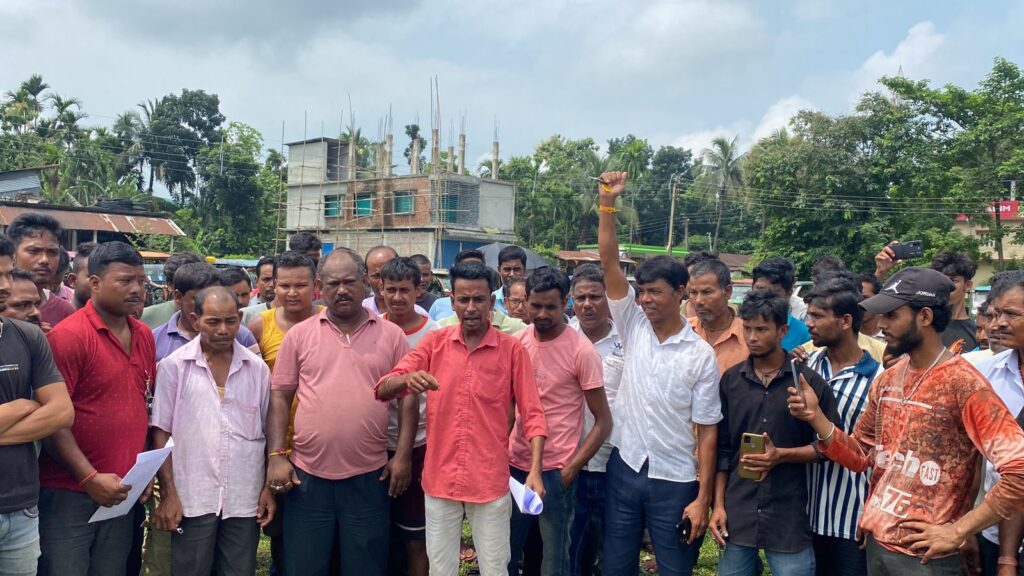 Rajganj, 05th August: E-rickshaw (toto) drivers staged protest in Ambari on Monday, demanding the continuation of operations for unregistered vehicles. Hundreds of totos were parked at the Ambari Targhera ground in Rajganj Block, as drivers from Ambari and surrounding areas joined the demonstration. The protest also included blocking registered totos from passing through the road.