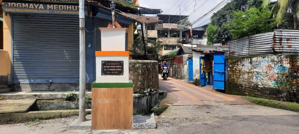 Siliguri, 29th August: Allegations of illegal construction have arisen in Ward No. 39 of Siliguri as a beautification initiative takes place near the municipal water supply tap along APC Sarani in Haider Para. Concerns have been raised regarding the unauthorized nature of the beautification work carried out near the tap. A flex bearing the name of a deceased individual has been placed above the tap. Moreover, an unauthorized electricity connection has been allegedly installed, with evening lighting adding to the controversy.
