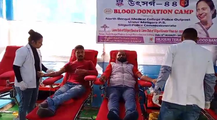 Siliguri, 06th January: A mega blood donation camp under the banner of “Utsarg 44th” was organized by the cops of Medical Outpost under the Siliguri Metropolitan Police. During the camp, the ADCP of Siliguri Metropolitan Police Suvendra Kumar, and the Super of Medical College Sanjay Mallick were present.