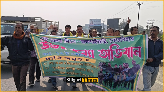 Fulbari, 12th February: Former KLO linkmen held the Uttar Kanya Abhiyan on Thursday, demanding employment along with three key demands. Linkmen from Jalpaiguri and Cooch Behar districts participated in large numbers.